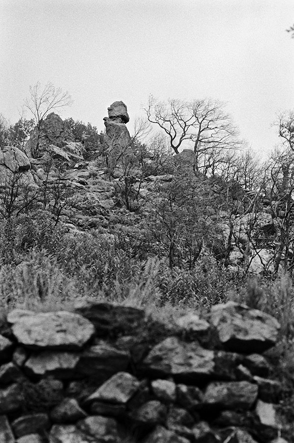Auf längeren Wanderungen entstand eine stille Zwiesprache mit der Landschaft. Die tiefen, dunklen Spalten in Steinen und Felsen stellte ich mir als archaische Münder vor, aus deren Tiefen längst vergessene Botschaften drangen – ein Raunen, das Menschen wohl zu allen Zeiten vernommen haben. Eine Felsnadel schien einen Kopf zu haben, an einer steil abfallenden Wand zeichnete sich das Relief eines Gesichts ab und ein faustgroßer Stein, der vor mir auf dem Weg lag, war geformt wie der Kopf eines schlafenden Mannes. Indem wir uns in der Natur erkennen, erkennen wir die Natur in uns.