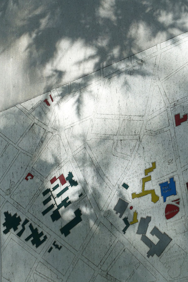 In einem auf wenige Hundert Meter begrenzten Radius wird der Grindel zum schillernden Labyrinth. Durch manche der surrealen, tagtraumartigen Bilder mit ihren Schatten, Spiegelungen und Reflektionen hallt ein Echo der bewegten Geschichte ebenso wie aktueller gesellschaftlicher Debatten.