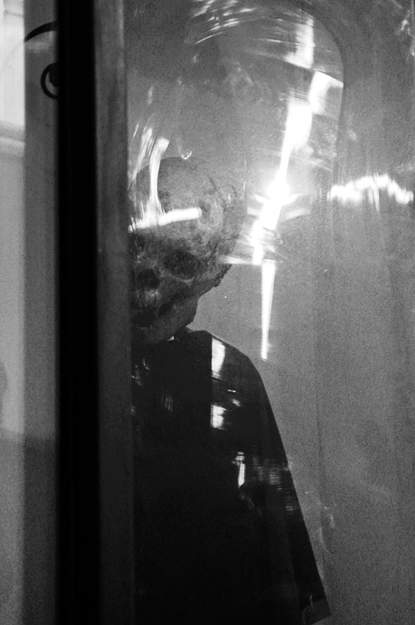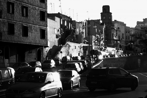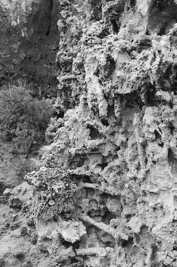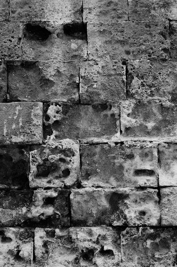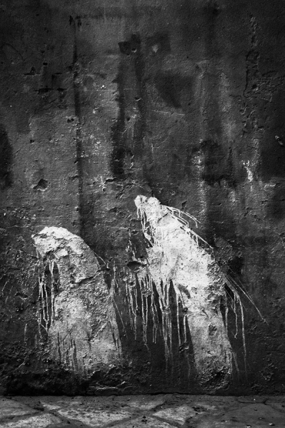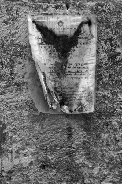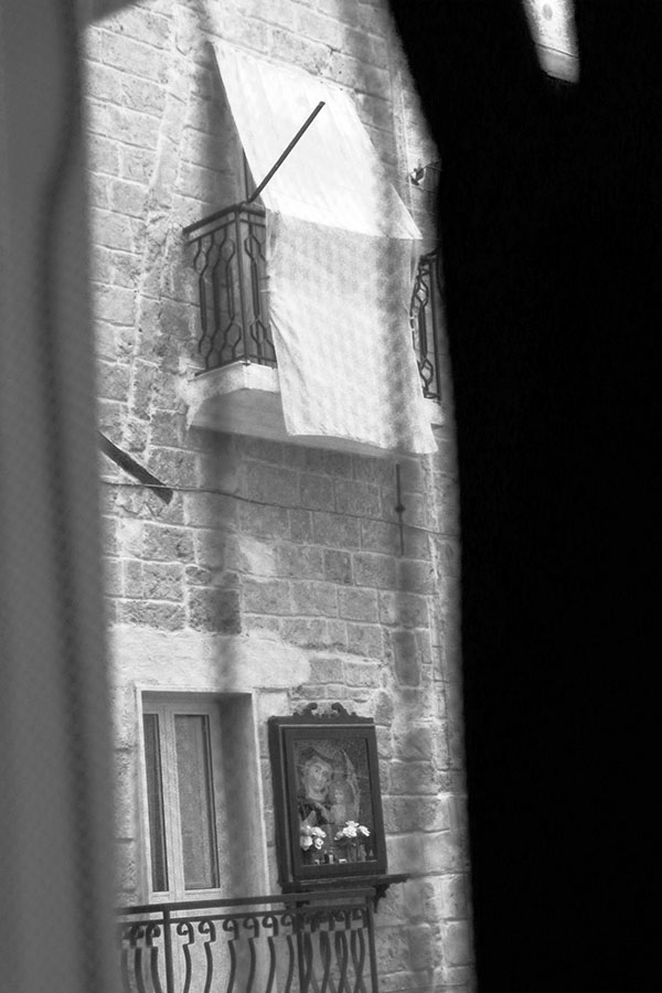 Monopoli, die »einzige Stadt«, liegt in Apulien an der italienischen Adria. Erbaut aus dem morbiden Gestein der Umgebung zersetzen sich ihre Mauern an der feuchten, salzhaltigen Luft. Manchmal geben sie dabei Fossilien frei. Verwitterte Heiligenbilder in den engen Gassen zeugen vom tief verwurzelten katholischen Volksglauben, ebenso die Ausstellung der Knochen Verstorbener in der »Kathedrale des Fegefeuers«. 2015 entstanden zahlreiche farbige und schwarzweiße Fotografien, hier eine kleine Auswahl.