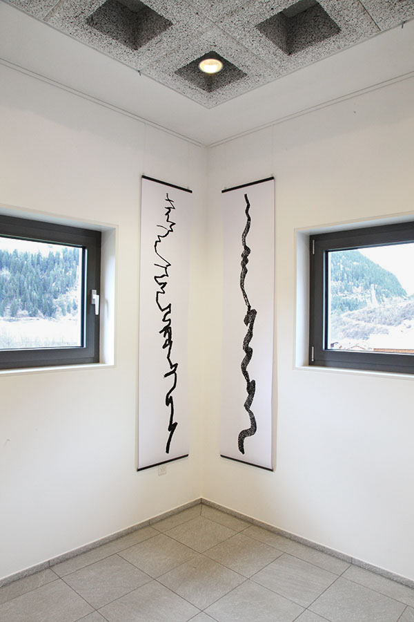 Auf den Straßen am Schamser Berg, im Val Ferrera und in der Via Mala (Kanton Graubünden, Schweiz), sind mir vielfältige Linien und Muster aufgefallen. Es sind Flicken aus Heißbitumen, mit denen Schäden repariert werden, die Frost, Wasser und die Bewegungen des Untergrundes in der Fahrbahn hinterlassen haben. Die schwarzen, glänzenden Linien machen das besonders deutlich sichtbar, was sie eigentlich verdecken sollen.