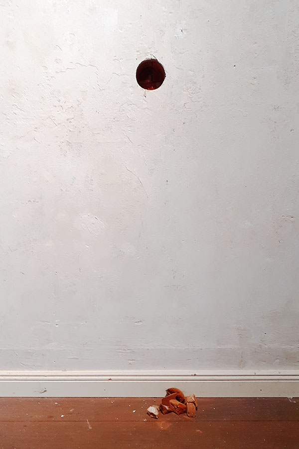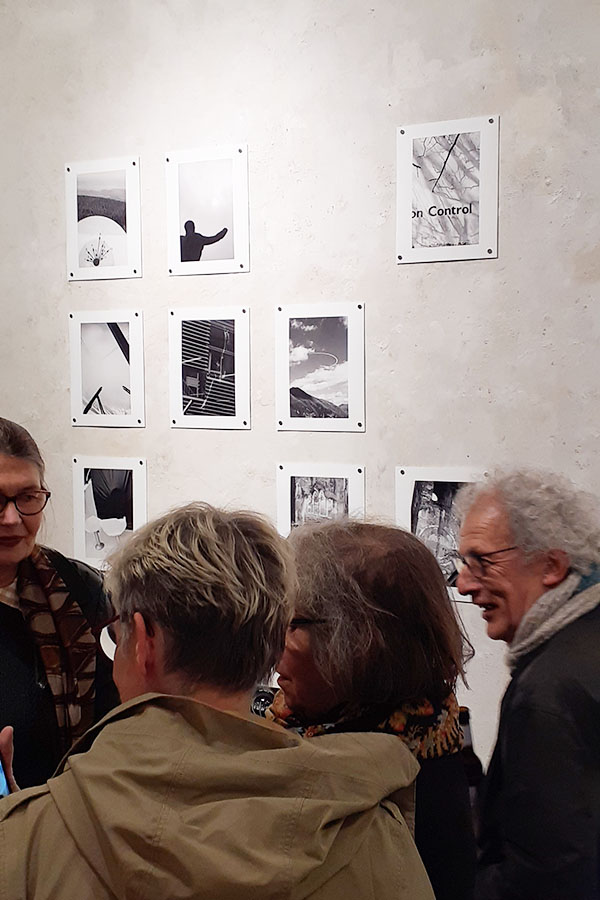Johannes Groht widmet sich in Schwarz-Weiß-Fotografien den Einflussmöglichkeiten des Menschen auf die Welt. In seiner Serie »on Control« beschäftigt er sich mit dem Verlust von Orientierung, wie sie etwa bei einem verfallenden Kirchturm mit einer Turmuhr ohne Ziffernblatt und Zeiger sichtbar wird. Zur Präsentation der Fotografien gehört auch ein Kompass, der die Hilflosigkeit konkret erfahrbar macht.