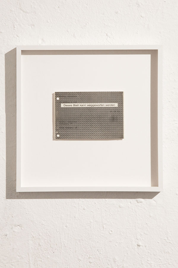 »Dieses Blatt« konterkariert die vermeintlich reibungslose Verwertungslogik der Dinge, indem es das als wertlos Markierte nicht nur erhält, sondern es gerahmt als explizit betrachtenswert präsentiert.
