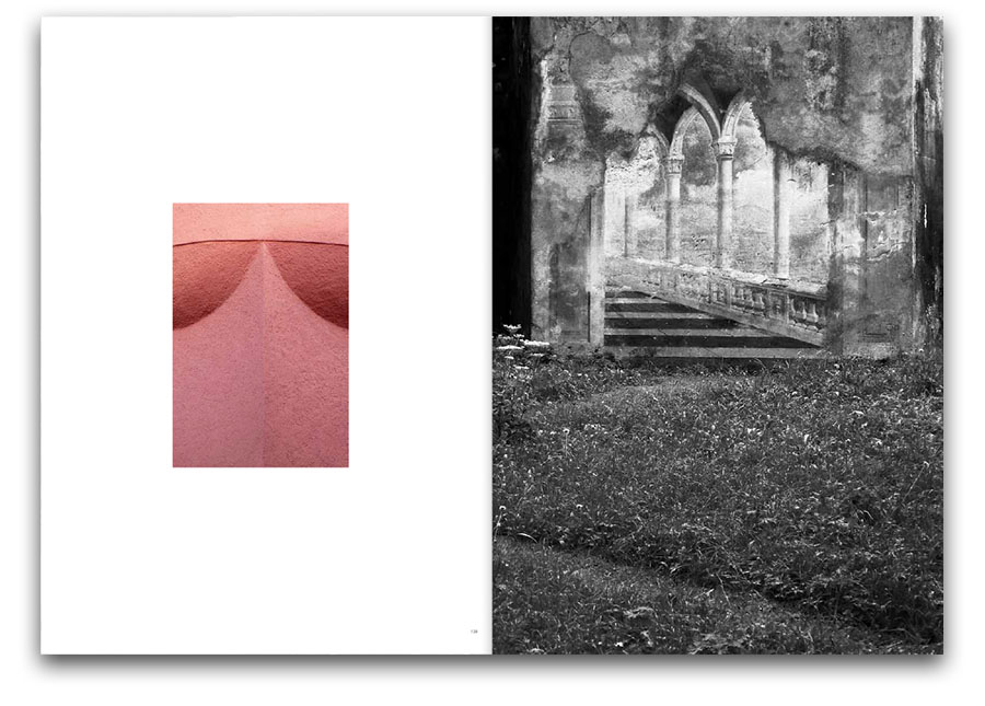Durch Verknüpfungen auf ganz unterschiedlichen Ebenen entsteht ein assoziativer Raum, der über die Aussage der einzelnen Fotografien hinausweist. Dieser Ansatz spiegelt sich auch im Titel des Buches, der durch die Reihung der drei Wörter für Vorder-, Hinter- und Alpenrhein im jeweiligen lokalen rätoromanischen Dialekt sowohl den physischen Raum zwischen den Quellflüssen als auch ihre Bewegung durch die Zeit bis zu ihrer Vereinigung umfasst.